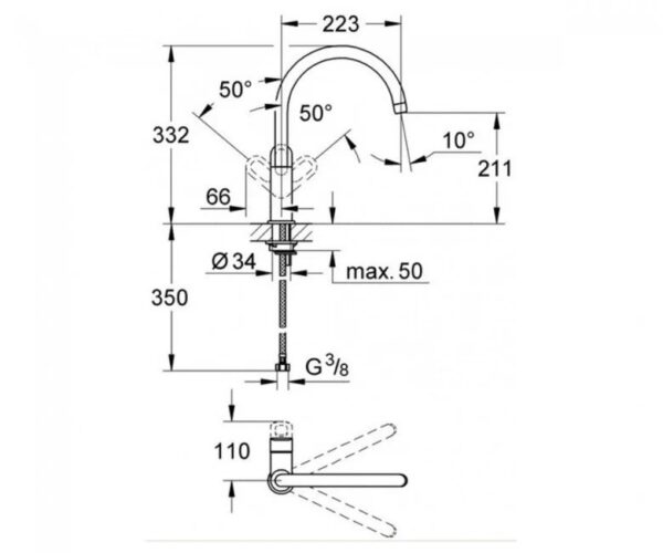 • Радиус поворота 360 градусов — обеспечивает максимальную гибкость и удобство в процессе работы на кухне.