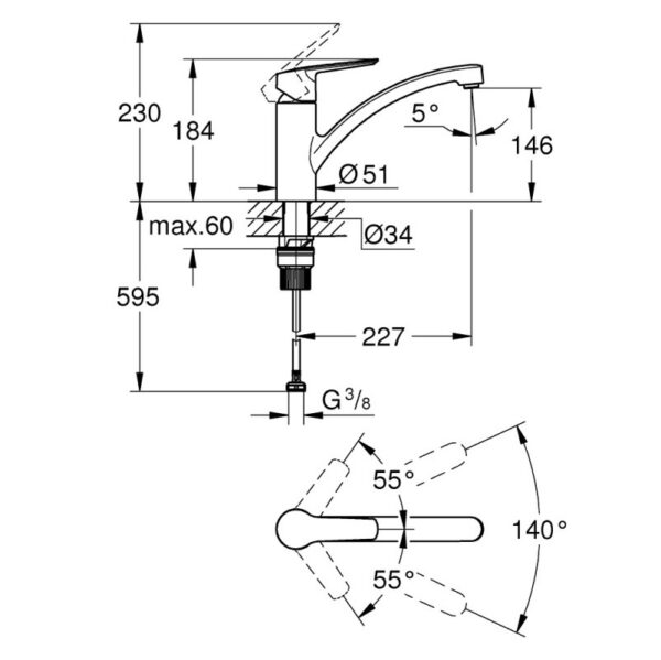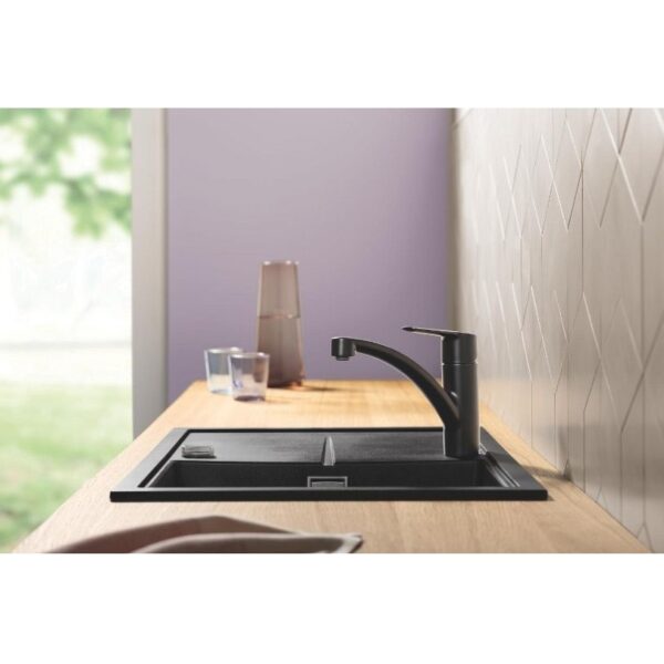 Смеситель для мойки Grohe Start 305302432 предназначен для монтажа на одно отверстие и имеет низкий излив. Он оснащен изолированным водотоком, что предотвращает контакт воды с металлами корпуса смесителя. Керамический картридж GROHE SilkMove размером 35 мм обеспечивает плавное и надежное управление потоком воды, а встроенный ограничитель температуры помогает поддерживать комфортный режим использования. Смеситель также оснащен стойким долговечным покрытием GROHE Long-Life Finish и настраиваемым ограничителем потока. Поворотный литой излив имеет угол поворота 140°, а аэратор можно легко снять без использования инструментов, например, с помощью монеты. Гибкая подводка размером 3/8″ обеспечивает удобство при установке. Комплект включает QuickMount для быстрой и простой установки.