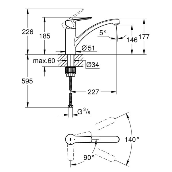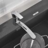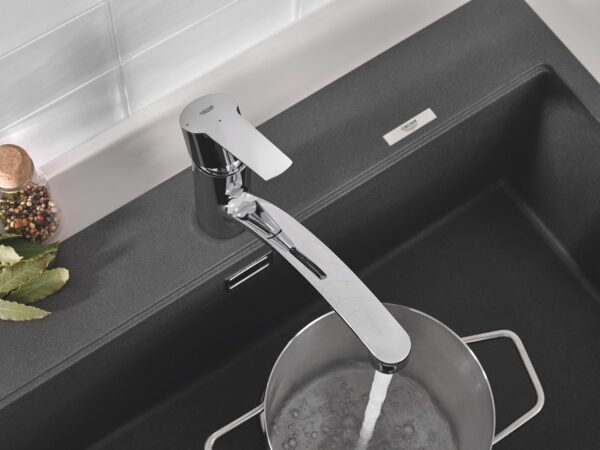 Выберите для своей мойки энергосберегающий однорычажный смеситель с низким изливом и выдвижным душем из линейки Grohe Start. Его хромированная поверхность придаст вашей кухне надежность и современность.