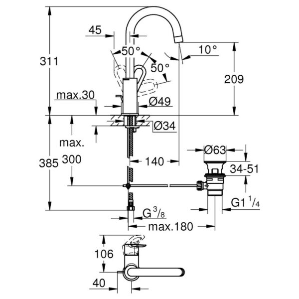 Код товара: 38802Смеситель для раковины Grohe BauLoop 23763000 L-Size