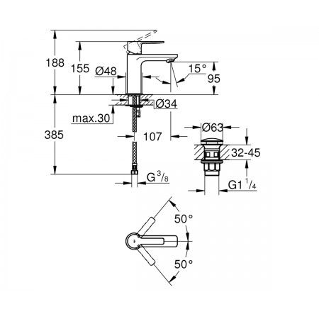 Код товара: 109500Смеситель для раковины Grohe Lineare однорычажный с нажимным донным клапаном XS-Size 23791DC1