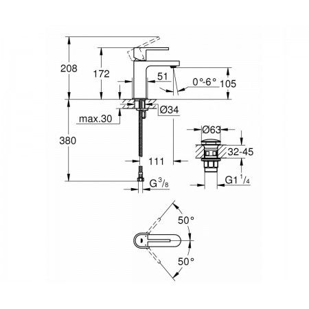 Смеситель для раковины Grohe PLus однорычажный S-Size + нажимной донный клапан 33163003