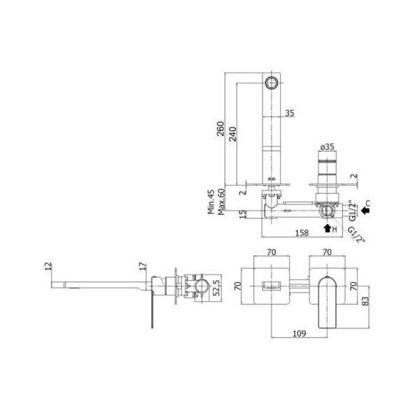 Настенный смеситель для раковины серии Tango от Paffoni сочетает современный дизайн с высокой функциональностью. Однорычажное управление и керамический картридж обеспечивают удобство и точность регулировки воды. Длина излива составляет 240 мм, а комплект поставки включает внешнюю и внутреннюю части смесителя, что позволяет выполнить скрытый монтаж с максимальным комфортом и надежностью.