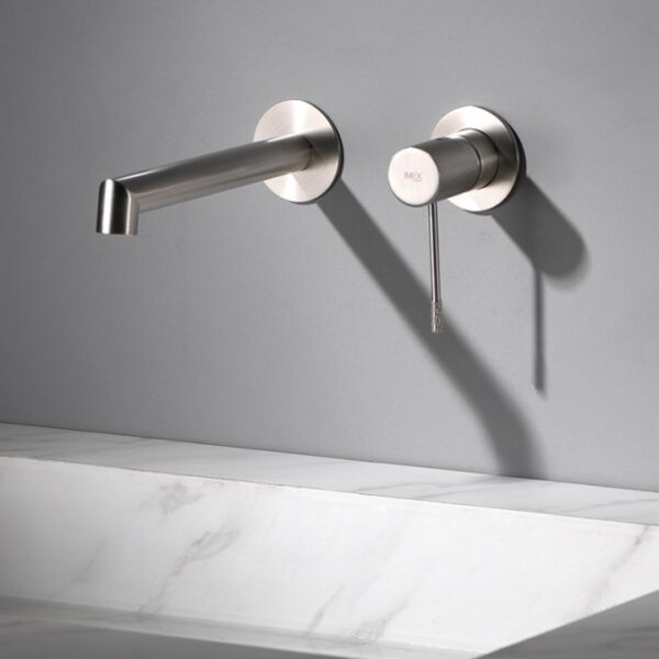 Настенный смеситель IMEX LINE BRUSHED NICKEL GLD038/NQ — это современный и стильный вариант для оснащения умывальника в ванной комнате. Он изготовлен в смелом дизайне с Г-образным изливом длиной 19,4 см и тонкой рукояткой. Цилиндрическая концепция формы сочетается со множеством интерьеров: от классического до современного. Матовое покрытие оттенка никеля обеспечивает стильный индустриальный внешний вид, который хорошо сочетается с другими элементами ванной комнаты. Один рычаг управления отвечает за точную регулировку напора и температуру воды. В основе механизма лежит высококачественный керамический картридж. Изготовленный из высококачественной латуни и стали, этот смеситель прослужит долгие годы без утраты своих функций.
