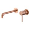 IMEX MONZA PVD BRUSHED ROSE GOLD Настенный смеситель для раковины, матовое розовое золото GLM039/OC — это современный и стильный вариант для оснащения умывальника в ванной комнате. Он выполнен в элегантном дизайне с изогнутым изливом длиной 22,5 см и одной тонкой ручкой. Его цилиндричная форма сочетается с различными стилями интерьера. Матовое покрытие золотого оттенка, нанесенное методом PVD, обеспечивает не только изысканный внешний вид, но и прочность, стойкость к царапинам и долговечность. Матовый эффект добавляет изысканности и умиротворенности, создавая теплую и уютную атмосферу в ванной комнате. Технология PVD позволяет создать стойкое и равномерное покрытие. Матовая обработка золотого оттенка, полученная методом PVD, имеет высокую стойкость к царапинам и истиранию, что делает смеситель более устойчивым к повседневным механическим воздействиям. PVD покрытие обеспечивает эффективную защиту от коррозии, что важно в условиях влажной среды ванной комнаты. Одна ручка управления отвечает за точную регулировку напора и температуры воды. В основе механизма лежит высококачественный керамический картридж. Изготовленный из высококачественной латуни и стали, этот смеситель прослужит долгие годы без потери своих функций. Установка смесителя осуществляется скрытым способом с помощью встроенного монтажного блока. Этот способ установки создает эффект чистоты и минимализма в ванной комнате благодаря скрытым коммуникациям в стене. Он легко вписывается в современный дизайн и придает интерьеру аккуратный вид. Более того, отсутствие выступающих элементов упрощает уборку и обслуживание ванной комнаты. Такой вариант крана идеально подходит для небольших помещений, где каждый сантиметр ценен. Технические характеристики:- Однорычажное управление