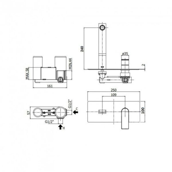 Смеситель настенный для умывальника Paffoni TANGO излив 240мм, хром (TA106CR)