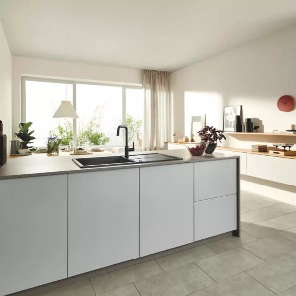 Изолированные внутренние водные каналы GROHE Zero® обеспечивают полную безопасность питьевой воды, исключая контакт с вредными металлами. Поворотный излив с радиусом 150° обеспечивает комфорт в использовании, а система гибких шлангов облегчает монтаж. Смеситель идеально подойдет для современной кухни, сочетая эстетику, удобство и высокие технологии Grohe.