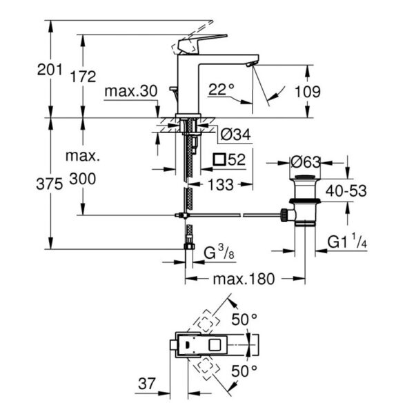 Удобство монтажа обеспечивает система GROHE QuickFix Plus, позволяющая сократить время установки вдвое. Встроенный подъемный шток дает возможность легко открывать и закрывать сливной клапан, делая использование еще более комфортным. Аэратор с системой SpeedClean легко очищается от известковых отложений и сохраняет равномерный поток воды.