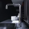 Строгая форма и четкие грани смесителя добавляют динамику интерьеру, а зеркальный блеск достигается покрытием High Gloss.