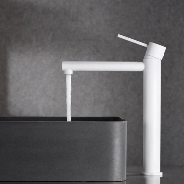 Смеситель для умывальника высокий, IMEX MILOS STICK белый матовый BDYS045-3BL