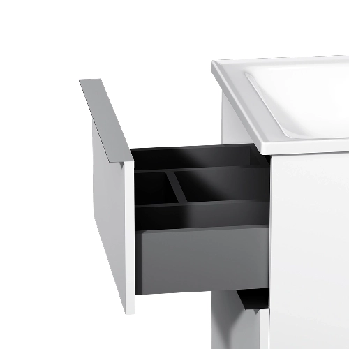 Мебель AM.PM X-JOY представляет собой современное европейское решение в стиле минимализм. Этот комплект оснащён удобной и функциональной керамической раковиной с глубокой чашей. Интегрированные в фасад фрезерованные ручки обеспечивают максимальное удобство.