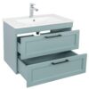 Компания Aqua Rodos считается одним из лучших производителей эксклюзивной и качественной сантехники в Украине. На протяжении многих лет бренд активно развивает свои позиции на рынке СНГ, ассоциируясь с высоким качеством, стильным дизайном и долговечной надежностью.Компания использует современное оборудование и сертифицированные материалы от ведущих мировых производителей, создавая качественную и экологичную продукцию. Каждый этап производственного процесса проходит через контроль качества. Уважаемые покупатели, обратите внимание, что эту модель можно заказать с покраской в один из 37 цветов по вашему желанию. Сроки изготовления — около 45 календарных дней. Материал фасада — МДФ. Материал раковины — керамика. Вид — тумба. Производитель умывальника — CeraStyle (Турция). Ширина умывальника — 75-85 см. Коллекция — Inari. Цвет изделия — зелёный мат.Гарантия — 3 года.