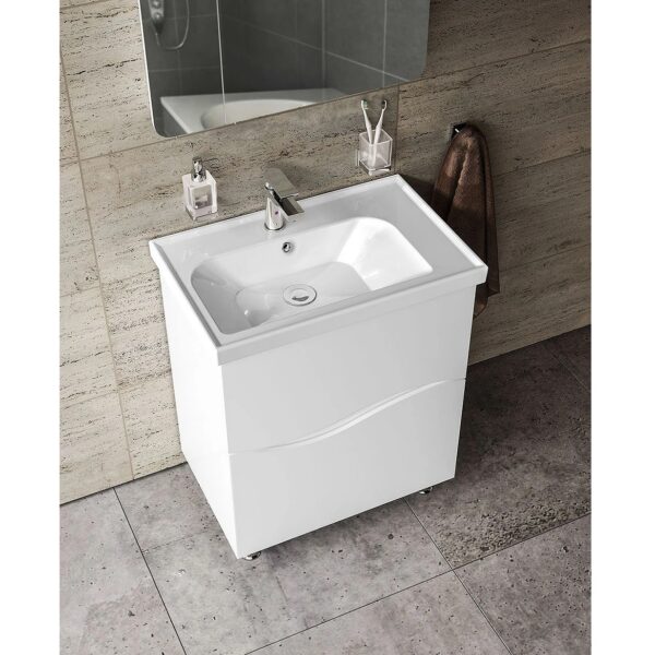 Компания Aqua Rodos заслуженно считается одним из лучших производителей эксклюзивной и качественной сантехники в Украине. Бренд активно развивается и уже много лет завоевывает рынок СНГ, ассоциируясь с высоким качеством, стильным дизайном и долговечностью продукции.Компания использует современное оборудование и сертифицированные материалы от ведущих мировых производителей, что позволяет создавать качественную и экологичную продукцию. Серия Альфа — это мебель, выполненная в современном дизайне, которая придаст эффектный вид всему интерьеру. Высококачественная фурнитура от ведущих мировых производителей сертифицирована и соответствует европейским стандартам качества.Корпус тумбы изготовлен из ДСП, фасад — из МДФ. Бренд — AquaRodos. Материал раковины — керамика. Дверцы выполнены в раздвижном варианте. Умывальник модели Frame имеет ширину 70 см и глубину 450 мм. Монтаж осуществляется напольным способом, а фурнитура производится компанией Hettich. Габариты изделия составляют 70*85*45 см.