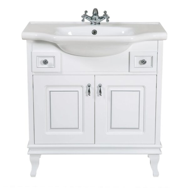 Тумба Аква Родос ,Беатриче 80 см белая с умывальником Нью Классик патина хром(АР000040197)