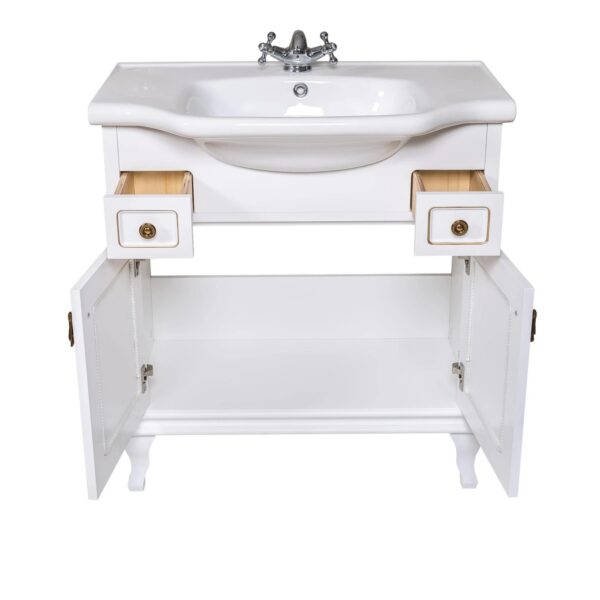 Тумба Аква Родос , Беатриче 80 см белая с умывальником Нью Классик патина золото(АР000040194)