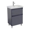 Компания Aqua Rodos заслуженно считается одним из лучших производителей эксклюзивной и качественной сантехники в Украине. Бренд активно развивается много лет и завоевывает рынок СНГ, ассоциируясь с высоким качеством, стильным дизайном и долговечной надежностью. Компания использует современное оборудование и сертифицированные материалы от лучших мировых производителей, создавая качественную и экологичную продукцию. Каждый этап производства проходит строгий контроль качества. Тумба AQUA RODOS Элит с умывальником CeraStyle Elite 60 см в графитовом глянце напольная — это мебель, выполненная в современном дизайне, которая придаст эффектный вид всему интерьеру. Фасад и боковины покрыты тремя слоями грунтовки и окрашены двумя слоями глянцевой полиуретановой краски производства «KEMICHAL» (Италия). Высококачественная фурнитура от ведущих мировых производителей сертифицирована и отвечает европейским стандартам качества. Материал фасада — МДФ, материал раковины — керамика. Умывальник Elite имеет ширину 60 см и глубину 450 мм. Корпус также изготовлен из МДФ, а монтаж осуществляется напольным способом. Коллекция представлена в цвете графит, фурнитура включает Blum и Hettich. Габариты тумбы составляют 60 х 85 х 45 см.