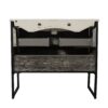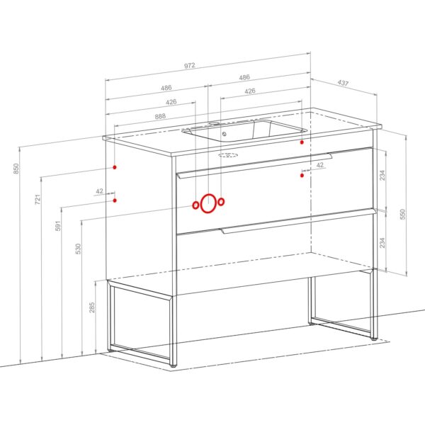 Элементы окрашиваются на производственной базе компании «Аква Родос». Металлические части окрашены в черный цвет, покрытие выполнено порошковой экологичной краской, не содержащей вредных компонентов. Выдвижные шкафы оснащены направляющими с механизмом медленного закрывания.