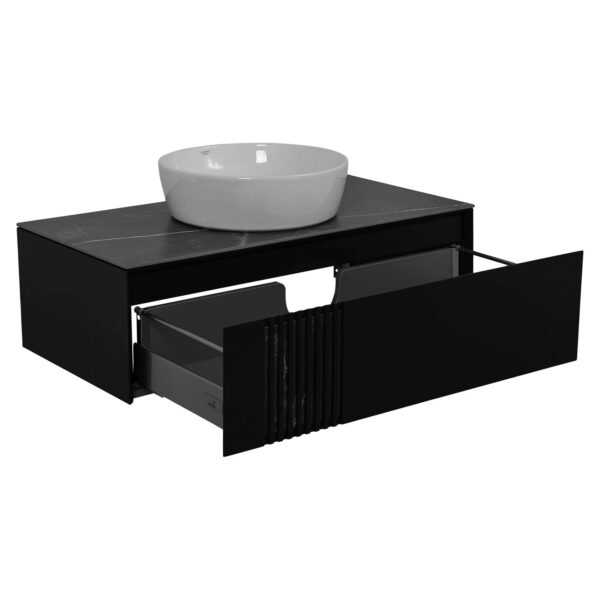 Мебель Манхэттен — это современный европейский дизайн в стиле модерн. Тумба оснащена декоративной столешницей из керамогранита, изготовленного из искусственного материала, с отделкой под серый мрамор. Этот материал обладает низким коэффициентом водопоглощения благодаря своей текстуре и низкой пористости. Тумба комплектуется керамическим умывальником, который можно выбрать под столешницу. Стоит отметить, что столешница не имеет отверстия под смеситель. Корпус и фасады покрыты тремя слоями грунта и пятью слоями премиальной краски производства «KEMICHAL», что защищает мебель от влаги и сохраняет первоначальный цвет на протяжении всего срока службы. Подвесная конструкция выглядит стильно и упрощает уборку. Интегрированные в фасад фрезерованные ручки обеспечивают максимальное удобство. Фурнитура TANDEMBOX от BLUM (Австрия) с доводчиком. Материал фасада — МДФ. Бренд — AquaRodos. Материал раковины — керамика. Вид — тумба. Производитель умывальника — CeraStyle (Турция). Столешница — есть. Ширина умывальника — 100 см. Материал корпуса — МДФ. Монтаж — напольный. Умывальник — накладной. Коллекция — Манхэттен. Цвет изделия — антрацит матовый. Габариты — 100x71x46 см.
