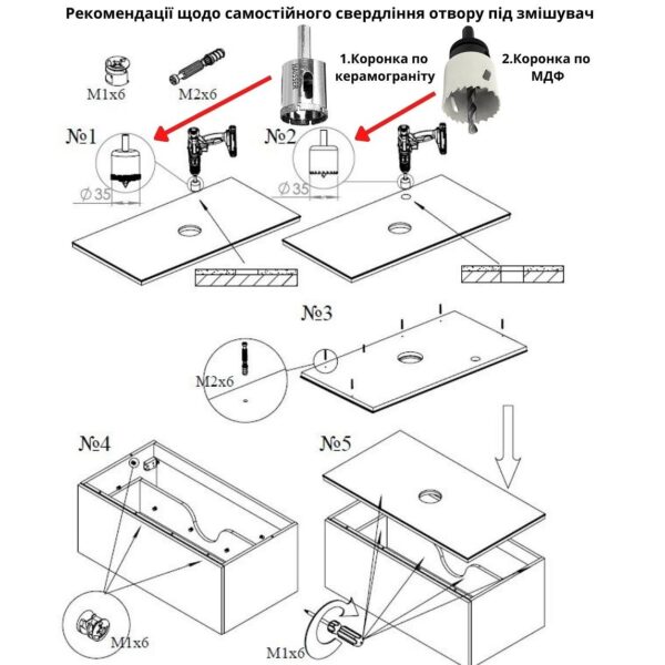 без отверстия под смеситель в столешнице (отверстие покупатель делает самостоятельно)