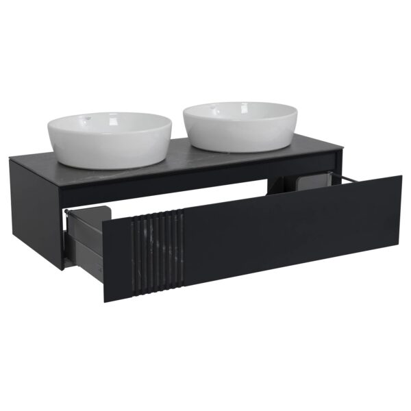 Компания Aqua Rodos заслуженно считается одним из лучших производителей эксклюзивной и качественной сантехники в Украине. Бренд активно развивается и уже много лет завоевывает рынок СНГ, ассоциируясь с высоким качеством, стильным дизайном и долговечностью продукции.Компания использует современное оборудование и сертифицированные материалы от ведущих мировых производителей, что позволяет создавать качественную и экологичную продукцию. Тумба Манхэттен антрацит матовый со столешницей 120 см и двумя умывальниками «One» 46 см. Мебель Манхэттен отличается современным европейским дизайном в стиле модерн.Мебель комплектуется декоративной столешницей из керамогранита, изготовленного из искусственного материала с отделкой под серый мрамор. Она обладает низким коэффициентом водопоглощения благодаря своей текстуре и низкой пористости.Тумба укомплектована керамическими умывальниками на выбор под столешницу.Обратите внимание, что столешница не имеет отверстия под смеситель.Корпус и фасады покрыты тремя слоями грунтовки и окрашены пятью слоями премиальной краски производства «KEMICHAL», что защищает мебель от воздействия влаги и сохраняет первоначальный цвет на протяжении всего срока службы. Подвесная конструкция выглядит эффектно и требует меньшего времени для уборки.Встроенные в фасад фрезерованные ручки обеспечивают удобство использования. Фурнитура TANDEMBOX от BLUM (Австрия) с доводчиком. Материал фасада — МДФ. Бренд — AquaRodos. Вид — тумба. Материал корпуса — МДФ. Монтаж — консольный. Коллекция — Манхэттен. Цвет изделия — антрацит матовый. Габариты — 120*71*46 см. Описание: без отверстий под смеситель (диаметр 35 мм) и сифон (диаметр 100 мм) в столешнице. Отверстия покупатель делает самостоятельно в зависимости от размеров смесителя и количества умывальников.