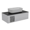 Мебель Манхэттен — это современный европейский дизайн в стиле модерн. В комплект входит декоративная столешница из керамогранита, изготовленная из искусственного материала, с декоративной отделкой из серого мрамора. Столешница имеет низкий коэффициент водопоглощения благодаря своей текстуре и низкой пористости. Тумба поставляется с керамической раковиной, которую можно выбрать под столешницу. Обратите внимание, что столешница не имеет отверстия для смесителя.