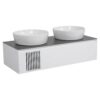 Мебель Манхэттен — это современный европейский дизайн в стиле модерн. Она комплектуется декоративной столешницей из керамогранита, изготовленной из искусственного материала и покрытой отделкой под серый мрамор. Благодаря своей текстуре и низкой пористости, столешница имеет низкий коэффициент водопоглощения. Мебель «Манхэттен» — это современный европейский дизайн в стиле модерн.Мебель комплектуется декоративной столешницей из керамогранита, изготовленного из искусственного материала с декоративной отделкой под серый мрамор. Она имеет низкий коэффициент водопоглощения благодаря текстуре и низкой пористости.Тумба комплектуется керамическим умывальником на выбор под столешницу.Обратите внимание, что столешница не имеет отверстия под смеситель.Корпус и фасады покрыты тремя слоями грунтовки и окрашены пятью слоями премиальной краски от «KEMICHAL», которая защищает мебель от влаги и сохраняет первоначальный цвет на весь срок службы. Подвесная конструкция выглядит эффектно и облегчает уборку.Самыми удобными являются интегрированные во фасад фрезерованные ручки.Фурнитура: TANDEMBOX от BLUM (Австрия) с доводчиком. Материал фасада — МДФ. Бренд — AquaRodos. Вид — тумба. Со столешницей — есть. Материал корпуса — МДФ. Цвет изделия — белый матовый. Монтаж — консольный. Коллекция — «Манхэттен». Фурнитура — Hettich. Габариты: 1207146 см.Описание: столешница без отверстия под смеситель (диаметр 35 мм) и сифон (диаметр 100 мм). Покупатель самостоятельно делает отверстия в зависимости от размеров смесителя и количества умывальников.