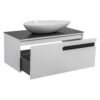 Мебель Остин — это современный европейский дизайн в стиле модерн.Комплектуется декоративной столешницей из керамогранита, изготовленного из искусственного материала с отделкой под серый мрамор. Благодаря своей текстуре и низкой пористости материал обладает низким коэффициентом водопоглощения.Тумба укомплектована керамической раковиной на выбор под столешницу. Обратите внимание, что столешница не имеет отверстия под смеситель.Корпус и фасады покрыты тремя слоями грунтовки и пятью слоями премиальной краски «KEMICHAL», которая защищает мебель от воздействия влаги и сохраняет первоначальный цвет в течение всего срока службы. Подвесная конструкция придает элегантность и облегчает уборку.Интегрированные во фасад фрезерованные ручки обеспечивают удобство в использовании. Фурнитура: выдвижная система BLUM (Австрия) с доводчиком.Материал раковины — керамика, материал корпуса — МДФ. Ширина раковины — 100 см. Раковина — накладная. Коллекция Остин. Цвет изделия — белый матовый. Габариты — 100*71*38,5 см, глубина — 385 мм.