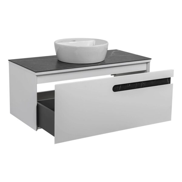 Компания Aqua Rodos по праву считается одним из лучших производителей эксклюзивной и качественной сантехники в Украине. На протяжении многих лет бренд активно развивается и завоевывает рынок в данном сегменте по всей территории СНГ, ассоциируясь с высоким качеством, стильным дизайном и долговечной надежностью.Компания использует современное оборудование и сертифицированные материалы от ведущих мировых производителей, создавая качественную и экологичную продукцию. Каждый этап производственного процесса проходит через контроль качества. Мебель Остин — это современный европейский дизайн в стиле модерн. Она оснащена столешницей из керамогранита с отделкой под серый мрамор, который благодаря своей низкой пористости не впитывает влагу. Тумба комплектуется керамическим умывальником на выбор, но столешница не имеет отверстия под смеситель. Корпус и фасады покрыты тремя слоями грунта и пятью слоями премиальной краски «KEMICHAL», что защищает от влаги и сохраняет цвет. Подвесная конструкция облегчает уборку. Фрезерованные ручки интегрированы в фасад, а выдвижная система BLUM с доводчиком обеспечивает плавное закрытие.Материал фасада — МДФ. Бренд — AquaRodos. Материал раковины — керамика. Вид — тумба. Производитель умывальника — CeraStyle (Турция). Столешница — есть. Ширина умывальника — 100 см. Фурнитура — Blum. Материал корпуса — МДФ. Цвет изделия — белый матовый. Монтаж — консольный. Глубина — 420 мм. Умывальник — накладной. Коллекция — Остин. Описание — без отверстия под смеситель в столешнице (отверстие покупатель делает самостоятельно). Материал столешницы — керамогранит 9 мм, цвет Namibia black. Габариты — 100*71*42 см.