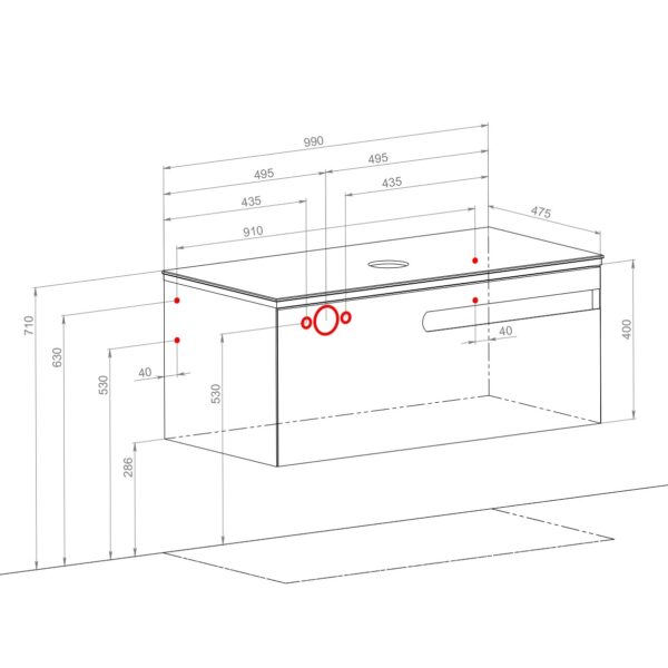 Без отверстия под смеситель в столешнице (отверстие покупатель делает самостоятельно).