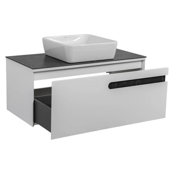 Тумба Аква Родос ,Остин белый мат со столешницей 100 см и умывальником ONE 46*46 см квадрат (АР000089764)