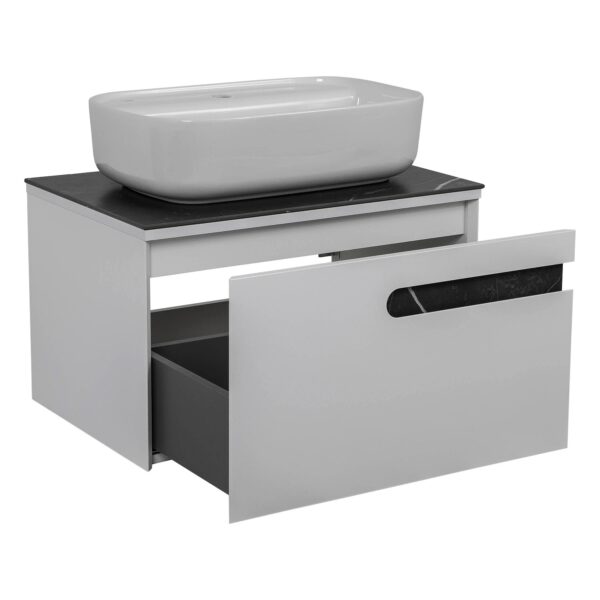 Компания Aqua Rodos заслуженно считается одним из лучших производителей эксклюзивной и качественной сантехники в Украине. Бренд активно развивается и уже много лет завоевывает рынок СНГ, ассоциируясь с высоким качеством, стильным дизайном и долговечностью продукции.Компания использует современное оборудование и сертифицированные материалы от ведущих мировых производителей, что позволяет создавать качественную и экологичную продукцию.Мебель Манхеттен — это современный европейский дизайн в стиле модерн. Мебель Остин — это современный европейский дизайн в стиле модерн.Она комплектуется декоративной столешницей из керамогранита, сделанного из искусственного материала и покрытого отделкой из серого мрамора. Столешница обладает низким коэффициентом водопоглощения благодаря своей текстуре и низкой пористости.Тумба поставляется с керамическим умывальником на выбор под столешницу. Обратите внимание, что столешница не имеет отверстия под смеситель.Корпус и фасады мебели покрыты тремя слоями грунта и покрашены пятью слоями премиальной краски производства «KEMICHAL», что защищает мебель от воздействия влаги и поддерживает первоначальный цвет продукта на протяжении всего срока службы. Подвесная конструкция выглядит эффектно и требует меньше времени на уборку.Интегрированные в фасад фрезерованные ручки обеспечивают максимальный комфорт. Фурнитура включает выдвижную систему BLUM (Австрия) с доводчиком. Материал фасада — МДФ, а материал раковины — керамика. Бренд — AquaRodos, производитель умывальника — CeraStyle (Турция). Умывальник накладной, ширина его составляет 70 см. Столешница выполнена из керамогранита толщиной 9 мм, цвет — Namibia black. Глубина составляет 400 мм, а габариты — 70*71*40 см.