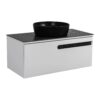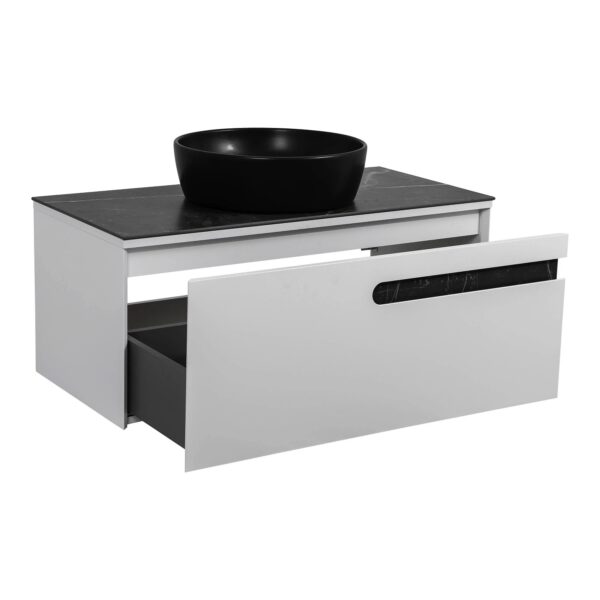 Мебель Остин представляет собой современный европейский дизайн в стиле модерн.Мебель комплектуется декоративной столешницей из керамогранита, сделанной из искусственного материала и покрытой декоративной отделкой из серого мрамора. Она обладает низким коэффициентом водопоглощения благодаря своей текстуре и низкой пористости.Тумба комплектуется керамическим умывальником на выбор под столешницу. Обратите внимание, что столешница не имеет отверстия под смеситель.Корпус и фасады мебели покрыты тремя слоями грунта и покрашены пятью слоями премиальной краски производства «KEMICHAL», что защищает мебель от воздействия влаги и поддерживает первоначальный цвет продукта на протяжении всего срока службы. Подвесная конструкция выглядит эффектно и требует меньше времени на уборку.Максимально удобные интегрированные в фасад фрезерованные ручки. Фурнитура включает выдвижную систему BLUM (Австрия) с доводчиком.Материал фасада — МДФ, а материал раковины — керамика. В коллекции представлен вариант с накладным умывальником. Ширина умывальника составляет 90 см. Описание включает информацию о том, что в столешнице нет отверстия под смеситель (отверстие покупатель делает самостоятельно).Материал столешницы — керамогранит толщиной 9 мм, цвет — Namibia black. Глубина составляет 460 мм, а габариты — 90*71*46 см.