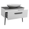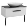 Мебель Сиена — это современный европейский дизайн в стиле модерн. Мебель комплектуется декоративной столешницей из керамогранита, который изготовлен из искусственного материала и покрыт декоративной отделкой из серого мрамора. Она обладает низким коэффициентом водопоглощения благодаря своей текстуре и низкой пористости. Тумба напольная с ножками нового дизайна комплектуется керамическим умывальником на выбор под столешницу. Обратите внимание, столешница не имеет отверстия под смеситель. Корпус и фасады покрыты тремя слоями грунта и окрашены пятью слоями премиальной краски производства «KEMICHAL», что защищает мебель от воздействия влаги и поддерживает первоначальный цвет продукта в течение всего срока службы. Подвесная конструкция выглядит эффектно и требует меньшего времени на уборку. Максимально удобные интегрированные в фасад фрезерованные ручки. Фурнитура: выдвижная система BLUM (Австрия) с доводчиком. Материал фасада — МДФ. Бренд — AquaRodos. Материал раковины — керамика. Вид — тумба. Производитель умывальника — CeraStyle (Турция). Ширина умывальника составляет 100 см. Цвет изделия — белый мат. Глубина — 385 мм. Умывальник — накладной. Описание: без отверстия под смеситель в столешнице (отверстие покупатель делает самостоятельно). Коллекция — Сиена. Материал столешницы — керамогранит 9 мм, цвет Namibia black. Габариты составляют 100*72,3*38,5 см.