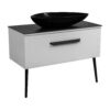 Мебель Сиена — это современный европейский дизайн в стиле модерн. Мебель комплектуется декоративной столешницей из керамогранита, который изготовлен из искусственного материала и покрыт декоративной отделкой из серого мрамора. Она имеет низкий коэффициент водопоглощения благодаря своей текстуре и низкой пористости.Тумба напольная с ножками нового дизайна комплектуется керамическим умывальником на выбор под столешницу. Обратите внимание, столешница не имеет отверстия под смеситель.Корпус и фасады покрыты тремя слоями грунта и окрашены пятью слоями премиальной краски производства «KEMICHAL», что защищает мебель от воздействия влаги и поддерживает первоначальный цвет продукта на протяжении всего срока службы. Подвесная конструкция выглядит эффектно и требует меньше времени на уборку.Удобные интегрированные в фасад фрезерованные ручки. Фурнитура: выдвижная система BLUM (Австрия) с доводчиком. Материал фасада — МДФ. Бренд — AquaRodos. Материал раковины — керамика. Вид — тумба. Производитель умывальника — CeraStyle (Турция). Ширина умывальника составляет 100 см. Цвет изделия — белый мат. Умывальник — накладной. Описание: без отверстия под смеситель в столешнице (отверстие покупатель делает самостоятельно). Коллекция — Сиена. Материал столешницы — керамогранит 9 мм, цвет Namibia black. Габариты составляют 100*72,3*38,5 см.