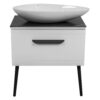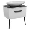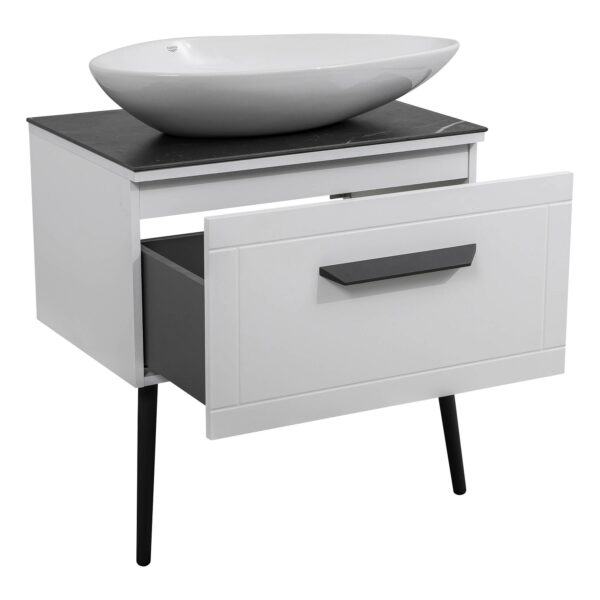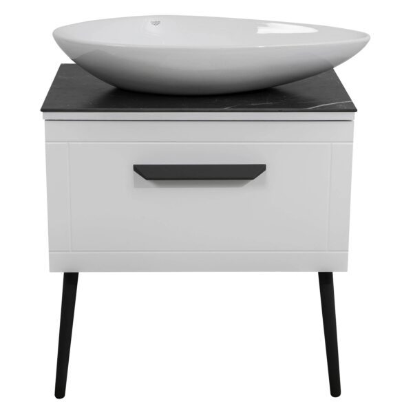 Мебель Сиена — это современный европейский дизайн в стиле модерн. Мебель комплектуется декоративной столешницей из керамогранита, изготовленного из искусственного материала и покрытого отделкой под серый мрамор. Она обладает низким коэффициентом водопоглощения благодаря текстуре и низкой пористости.Напольная тумба с ножками нового дизайна комплектуется керамическим умывальником на выбор под столешницу. Обратите внимание, что столешница не имеет отверстия под смеситель.Корпус и фасады покрыты тремя слоями грунта и пятью слоями премиальной краски производства «KEMICHAL», что защищает мебель от влаги и сохраняет первоначальный цвет на протяжении всего срока службы. Подвесная конструкция выглядит эффектно и требует меньше времени на уборку.Интегрированные в фасад фрезерованные ручки обеспечивают удобство использования. Фурнитура — выдвижная система BLUM (Австрия) с доводчиком. Материал фасада — МДФ, бренд — AquaRodos. Материал раковины — керамика, производитель — CeraStyle (Турция). Ширина умывальника — 70 см. Умывальник накладной, без отверстия под смеситель (отверстие покупатель делает самостоятельно). Коллекция — Сиена. Материал столешницы — керамогранит 9 мм, цвет Namibia black. Габариты — 70*72,3*38,5 см.