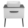 Мебель «Сиена» — это современный европейский дизайн в стиле модерн. Она комплектуется декоративной столешницей из керамогранита, изготовленного из искусственного материала и покрытого отделкой под серый мрамор. Этот материал обладает низким коэффициентом водопоглощения благодаря своей текстуре и низкой пористости.Напольная тумба с ножками нового дизайна оснащается керамическим умывальником, который можно выбрать для установки под столешницу. Обратите внимание, что столешница не имеет отверстия под смеситель.Корпус и фасады мебели покрыты тремя слоями грунта и окрашены пятью слоями премиальной краски производства «KEMICHAL», что защищает мебель от влаги и сохраняет первоначальный цвет в течение всего срока службы. Подвесная конструкция придает изделию эффектный вид и облегчает уборку.Фрезерованные ручки, интегрированные в фасад, обеспечивают максимальное удобство. Фурнитура — выдвижная система BLUM (Австрия) с доводчиком. Материал фасада — МДФ. Бренд — AquaRodos. Умывальник выполнен из керамики, ширина 70 см, производитель — CeraStyle (Турция). Столешница изготовлена из керамогранита толщиной 9 мм, цвет Namibia black. Габариты тумбы — 70*72,3*46 см.