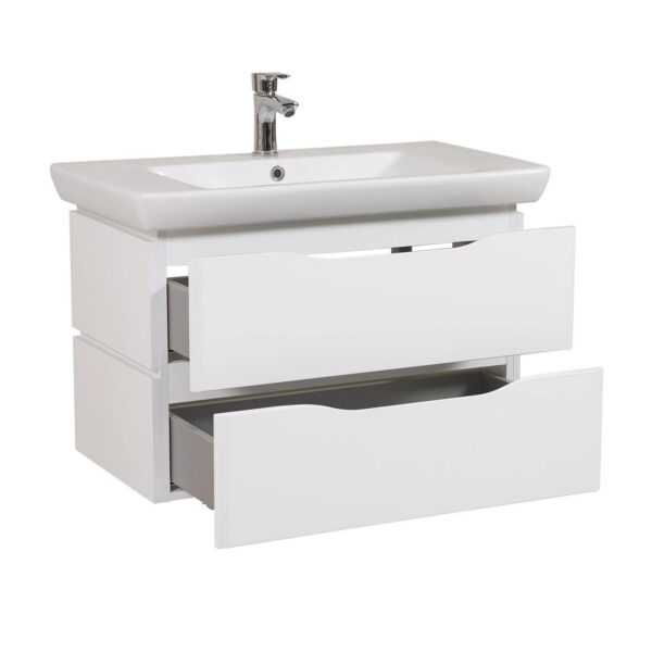 Коллекция Венеция от Aqua Rodos — это элегантная мебель для ванной комнаты, которая понравится любителям минимализма в дизайне. Коллекция оснащена скрытыми ручками с декоративной вставкой.В коллекции используются прямоугольные умывальники от CeraStyle (Турция). Консольная модель имеет два выдвижных ящика, которые обеспечивают достаточно места для хранения ванных принадлежностей.Коллекция Венеция сочетает стиль и комфорт, создавая удобную и современную ванную комнату.Корпус выполнен из ДСП, фасад — из МДФ. Бренд — AquaRodos. Материал раковины — керамика. Вид — тумба. Производитель умывальника — CeraStyle (Турция). Дверцы — выдвижные. Монтаж — консольный. Ширина умывальника — 75-85 см. Глубина — 480 мм. Умывальник — City. Габариты — 85*85*48 см.