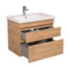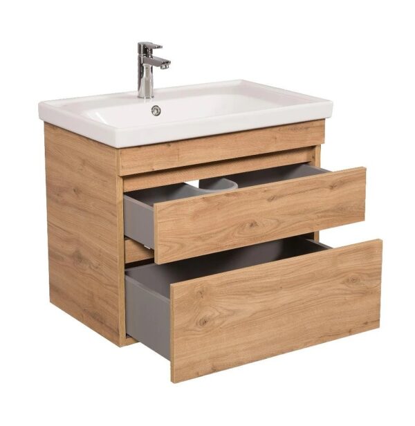 Компания Aqua Rodos по праву считается одним из лучших производителей эксклюзивной и качественной сантехники в Украине. Много лет бренд активно развивается и укрепляет свои позиции на рынке СНГ, ассоциируясь с высоким качеством, стильным дизайном и надежностью. Компания использует современное оборудование и сертифицированные материалы от лучших мировых производителей, что позволяет создавать качественную и экологичную продукцию. Каждый этап производственного процесса проходит строгий контроль качества. Коллекция «Винтаж» — это элегантная мебель для ванной комнаты, которая порадует ценителей минимализма в дизайне интерьера. Модель оснащена керамической раковиной серии Frame шириной 70 см от турецкой компании Cerastyle. Раковина имеет отверстие для установки смесителя и комплектуется переливным отверстием. Смеситель приобретается отдельно. Гарантия на изделие составляет 3 года. Корпус тумбы выполнен из ДСП, фасад — из МДФ. Цвет изделия — «Севилья». Ширина раковины — 70 см, высота тумбы — 750 мм, ширина — 650 мм, глубина — 450 мм. Тумба предназначена для консольного монтажа, ее общие габариты — 70×85×45 см.