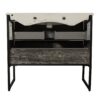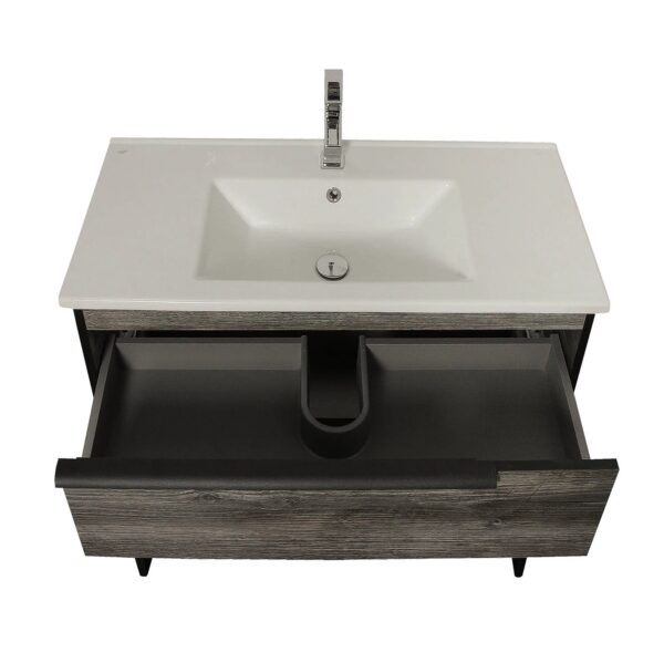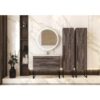 Ножки для тумбы приобретаются отдельно. Тумба может быть как консольной, так и напольной. Модель Neo изготовлена из ДСП в цветах севилья и дуб морас. Несмотря на консольный формат, с помощью дополнительных ножек она может быть установлена на пол. Тумба может комплектоваться столешницей под накладной умывальник или керамическим умывальником Arte. Модель доступна в размерах 65, 75, 85 и 100. Тумба оснащена металлическими элементами, включая ножки (опция) и металлическую ручку. Все металлические детали покрываются черной порошковой краской на производстве компании Aqua Rodos. Краска экологична и безопасна. Выдвижные шкафы снабжены направляющими с механизмом медленного закрывания. Материал корпуса тумбы изготовлен из ДСП. Бренд продукции — AquaRodos. Раковина выполнена из керамики, а производитель умывальника — компания CeraStyle из Турции. Фасад тумбы сделан из МДФ. Ширина умывальника составляет 100 см, монтаж универсальный, а фурнитура — Hettich. Тумба принадлежит коллекции Лофт и представлена в цвете дуб морас. Умывальник модели Arte. Габариты изделия составляют 100 см в ширину, 85 см в высоту и 44,5 см в глубину.