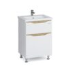 «ЛИГА» — напольная тумба для ванной комнаты шириной 60 см, представленная в комплекте с умывальником. Модель оснащена двумя выдвижными ящиками и выполнена в современном эко-стиле, который подчёркивают изысканные декоративные вставки в оттенке светлой древесины Мессина. Корпус изделия изготовлен из влагостойкого МДФ и окрашен в три слоя безопасной, экологически чистой краской Sayerlack (Италия), что обеспечивает устойчивость к влаге, царапинам и длительное сохранение цвета.