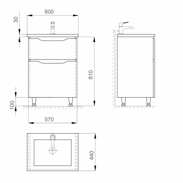 В комплект входит высококачественный керамический умывальник от Quarter Bath (Турция). Глубина чаши составляет 110 мм, толщина — 40 мм. Эти параметры идеально подходят для ежедневного использования, обеспечивая комфорт и практичность.