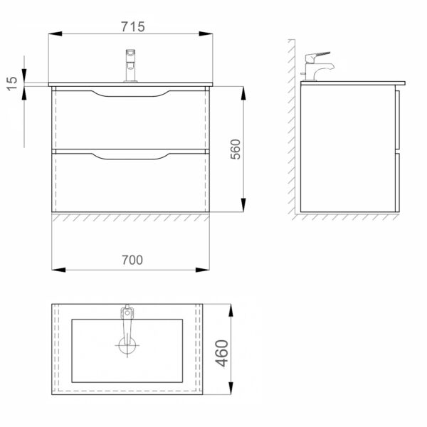 Подвесная тумба «ЛИГА AIR» 70 изготовлена из влагостойкого и прочного МДФ и окрашена в три слоя премиальной итальянской краской Sayerlack, что обеспечивает безупречное покрытие и стойкость к воздействию влаги.