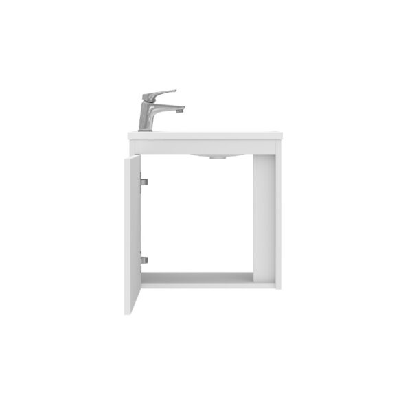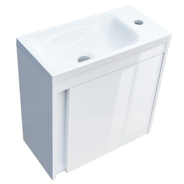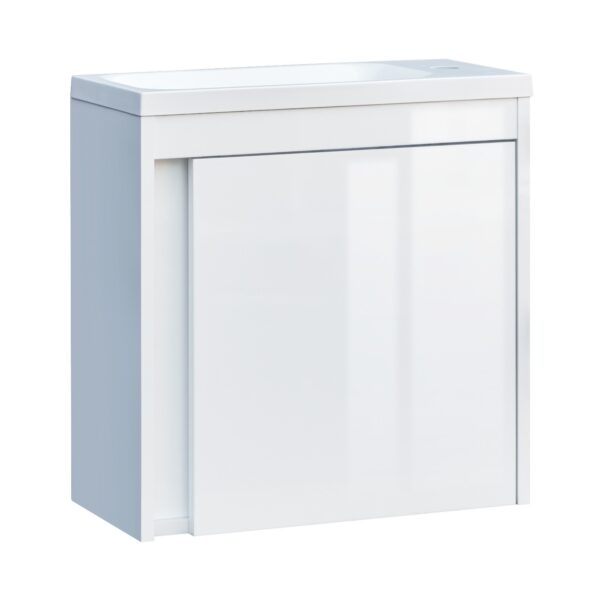 Devit предлагает стильную и качественную сантехнику для создания функционального и элегантного пространства. Бренд использует комплексный подход, предлагая ванны, умывальники, унитазы, биде, смесители, душевые кабины и мебель, которые гармонично дополняют любой интерьер. Философия Devit основана на сочетании современного дизайна и инновационных технологий. Одним из уникальных решений компании стало покрытие Extra Clean, предотвращающее загрязнения. Это позволяет изделиям сохранять блеск и гладкость, облегчая уход. Вся продукция Devit отвечает международным стандартам качества, изготавливается из экологичных материалов и сопровождается гарантийным обслуживанием. Тумба с раковиной Devit Small 063050W, 50 см, белый глянец Характеристики: