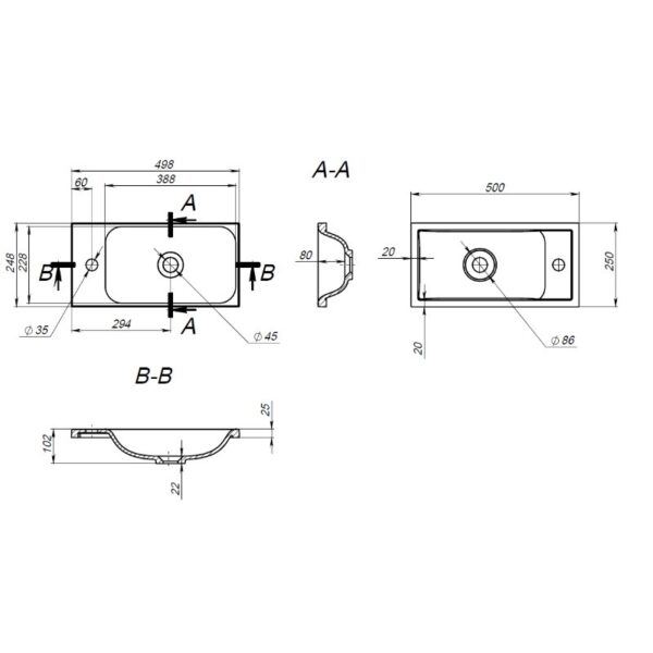 - Материал раковины: искусственный камень