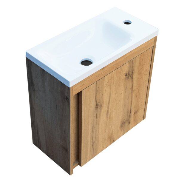 Devit предлагает стильную и качественную сантехнику для создания функционального и элегантного пространства. Бренд использует комплексный подход, предлагая ванны, умывальники, унитазы, биде, смесители, душевые кабины и мебель, которые гармонично дополняют любой интерьер. Философия Devit основана на сочетании современного дизайна и инновационных технологий. Одним из уникальных решений компании стало покрытие Extra Clean, предотвращающее загрязнения. Это позволяет изделиям сохранять блеск и гладкость, облегчая уход. Вся продукция Devit отвечает международным стандартам качества, изготавливается из экологичных материалов и сопровождается гарантийным обслуживанием. Тумба с раковиной Devit Small 063050O, 50 см, дуб Характеристики:
