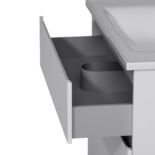 Семислойное покрытие полиакриловыми эмалями защищает мебель от влаги и сохраняет её цвет на протяжении всего срока службы. Подвесная конструкция выглядит эффектно и упрощает уборку.