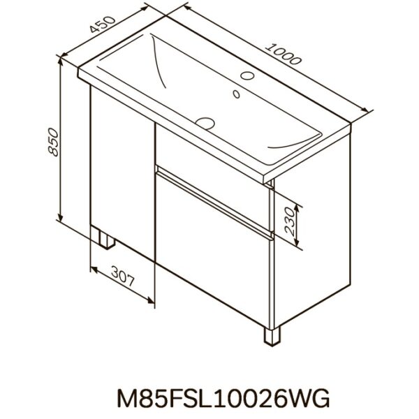 Тумба с раковиной, напольная, 100 см, левая, 2 ящика M85-FSL10026-WC10026WG38 AM.PM X-Joy