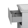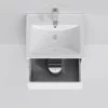 Покрытие из 7 слоев полиакриловых эмалей защищает мебель от влаги и сохраняет её первоначальный цвет на протяжении всего срока службы. Подвесная конструкция выглядит эффектно и упрощает уборку.