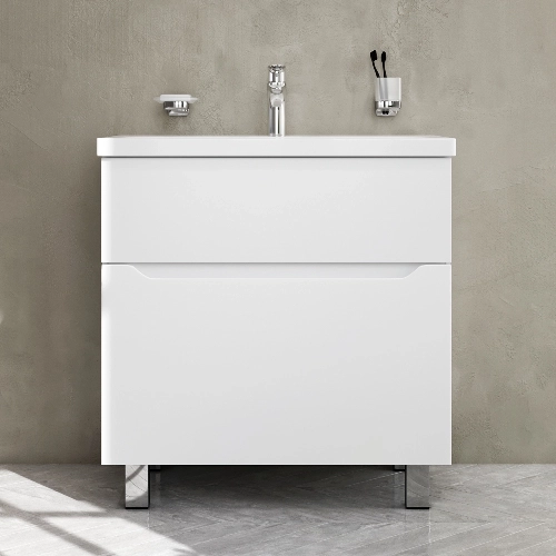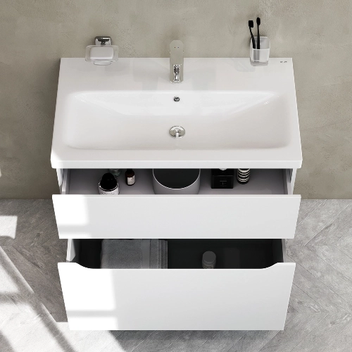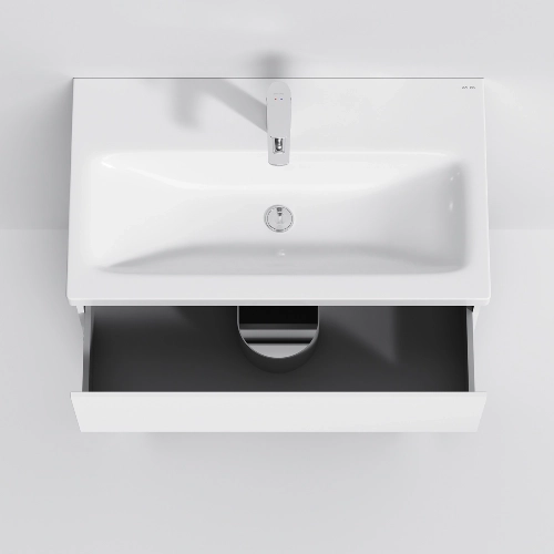 Дизайн мебели поддерживает единую концепцию в стиле Gem. Массивная керамическая раковина толщиной 5 см и проекцией 42 см идеально подходит даже для компактных ванных комнат.