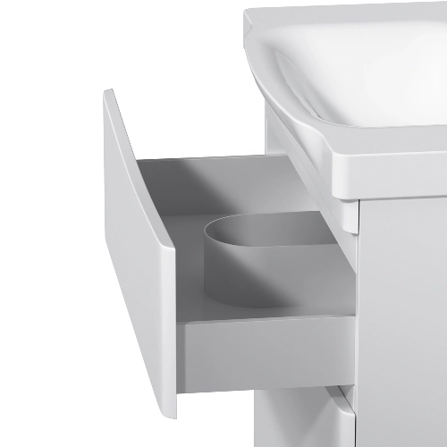 Впервые ультрамодная дизайнерская мебель в стиле Dynamic Organic стала доступна в бюджетном сегменте. Утонченность проявляется в деталях: удобные интегрированные ручки идеально повторяют изгиб выступа раковины.
